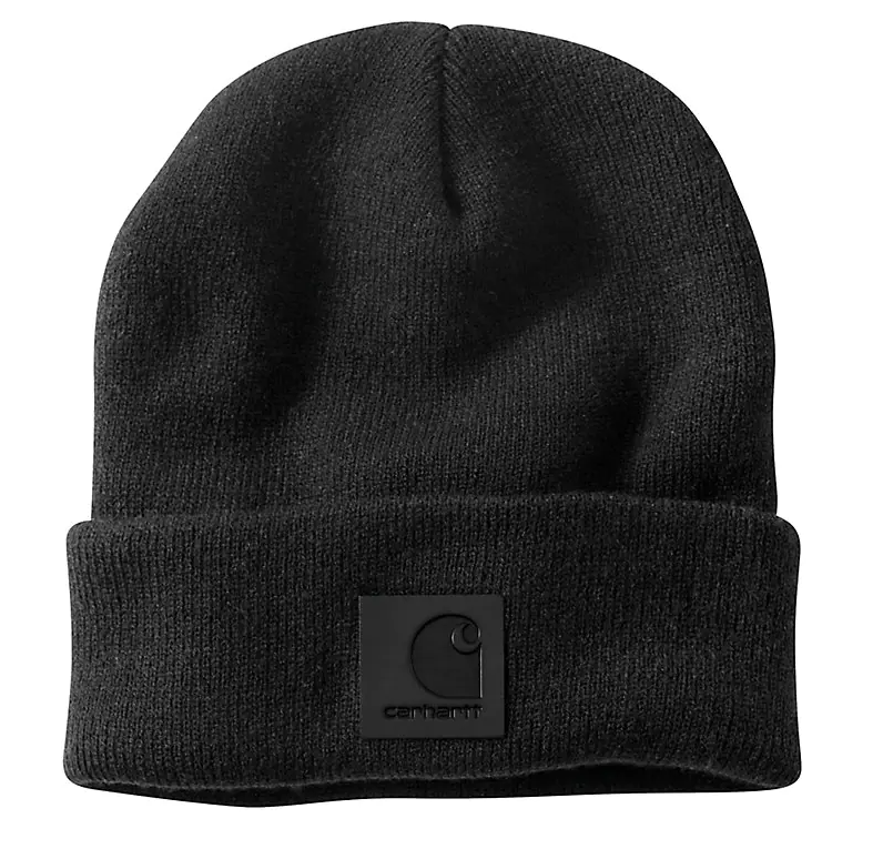 Introduced in 1987, the acrylic watch hat is one of the most iconic pieces we make. This version of the A18 is all black, down to the Carhartt patch on the cuff. It's made of soft, stretchy rib knit that keeps out the cold.