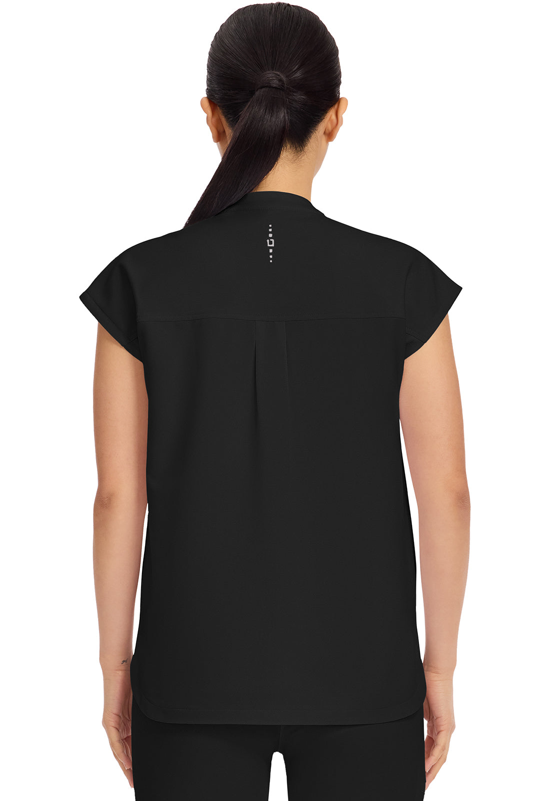 Oversized comfy Mandarin Collar Boxy top features collared neckline with half zip, dolman sleeves, 2 welt pockets, rounded hem & back yoke box pleat detail. Knit trim at front shoulder and back yoke add to this tops charm.