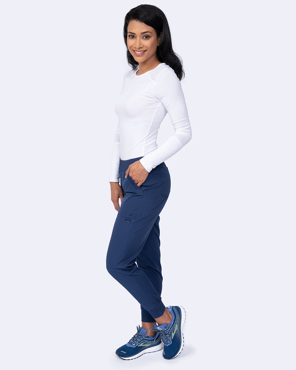 - Two front easy slip curved patch pockets with rib knit detail at pocket entry