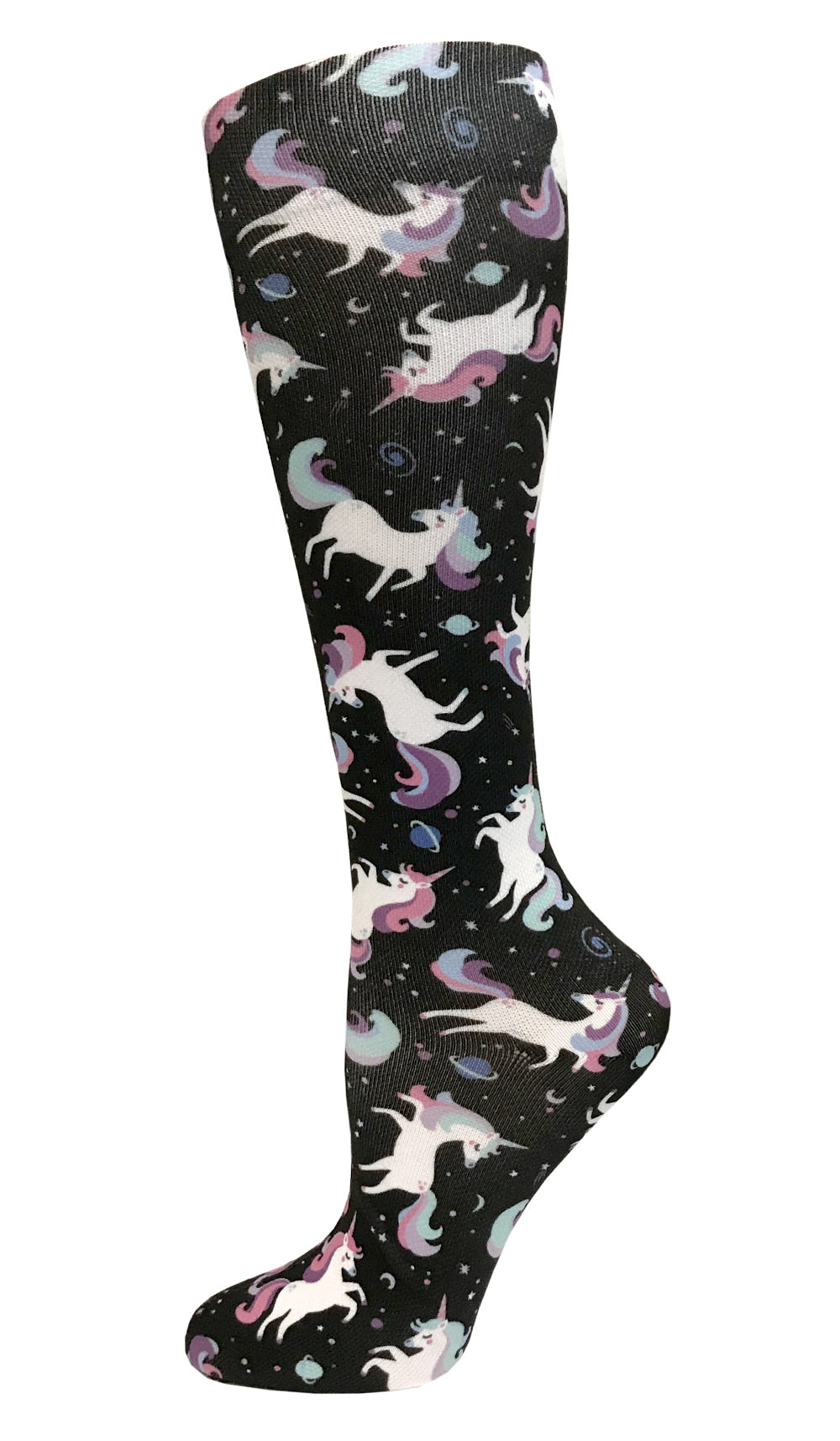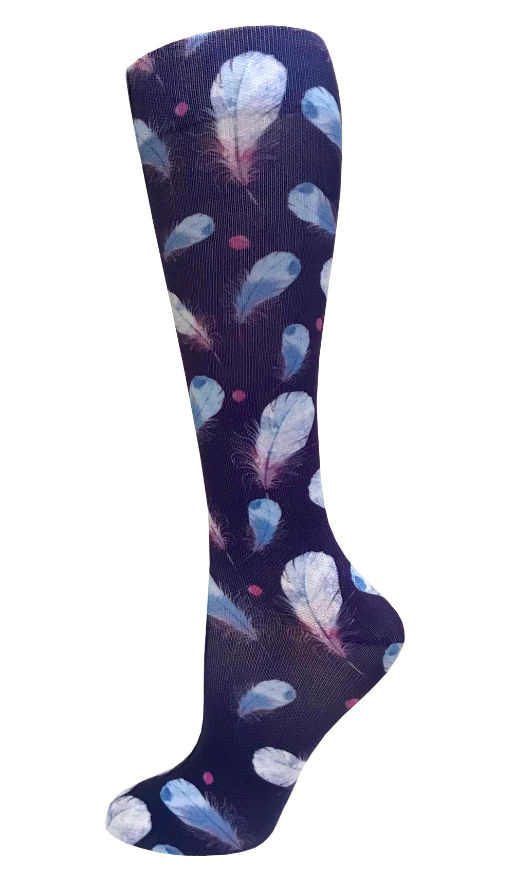A 12" compression sock in our fashion prints! Features a soft and smooth finish for extra comfort. Light weight compression for nurses who spend long hours on their feet. A portion of the sale of the pink ribbon print is donated to the American Cancer Society.
