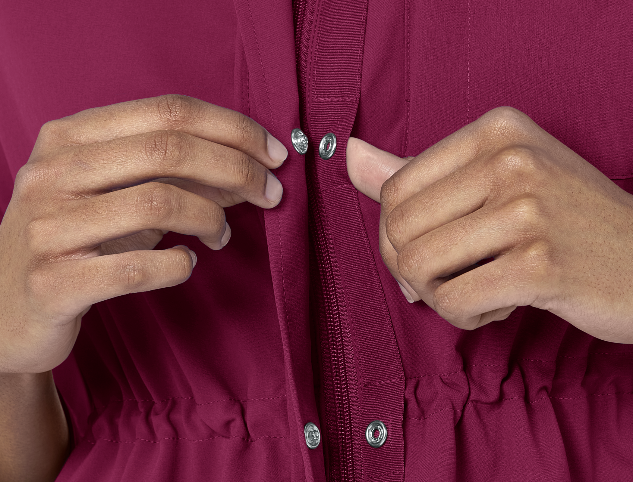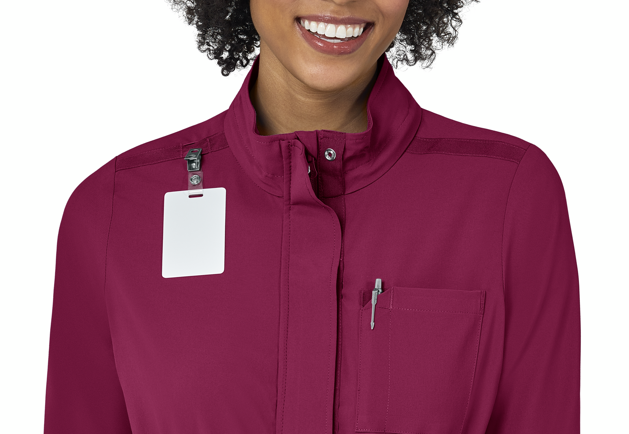 • Mock neck with chin guard and zip front closure with "Easy-Snap"