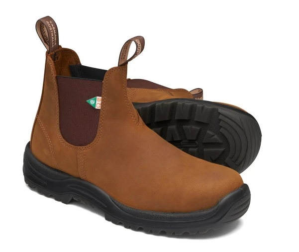 Blundstone steel toe work boots just make the job a little easier. This pull-on, kick-off safety boot is water resistant with a heat, slip, oil, acid and electric shock-resistant sole. XRD® footbeds for all-day comfort and support, even on concrete. CSA approved.