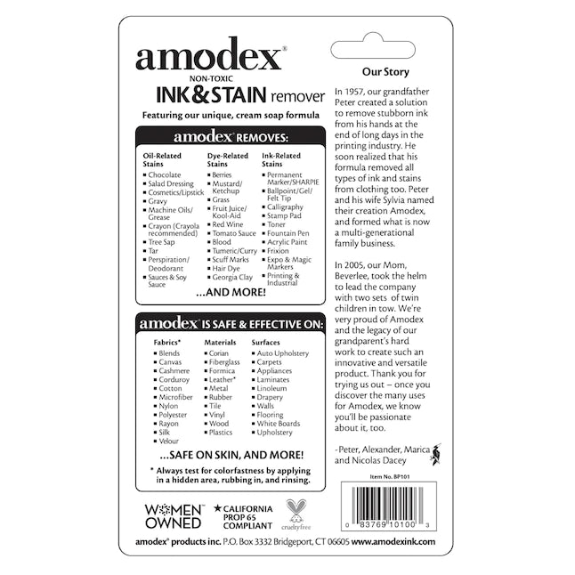 Removes all inks, including sharpie, and food, grease, grass, clay, sap, tar, and other difficult stains