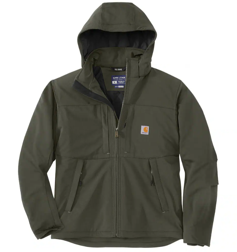 Work or play, when the weather turns damp and windy, this men's Super Dux® insulated jacket keeps you warm and mobile. It's named after the original Carhartt hunting gear from the 1930s, but it features modern insulation and a lightweight, low-profile feel that flexes for an unrestricted feel. Back pleats and underarm gussets make sure you always have room to swing an axe or reach over your head. It's also wind-resistant, sheds light rain, and is more abrasion-resistant than our traditional duck canvas. An adjustable hood and plenty of pockets make sure you're always prepared.