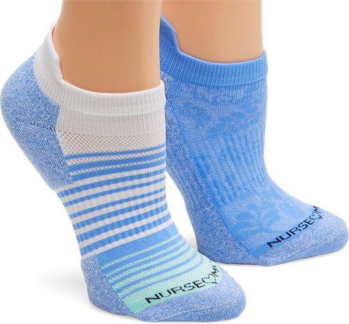 Nurse Mates Compression Anklet 2 Pack-Denim floral/stripe