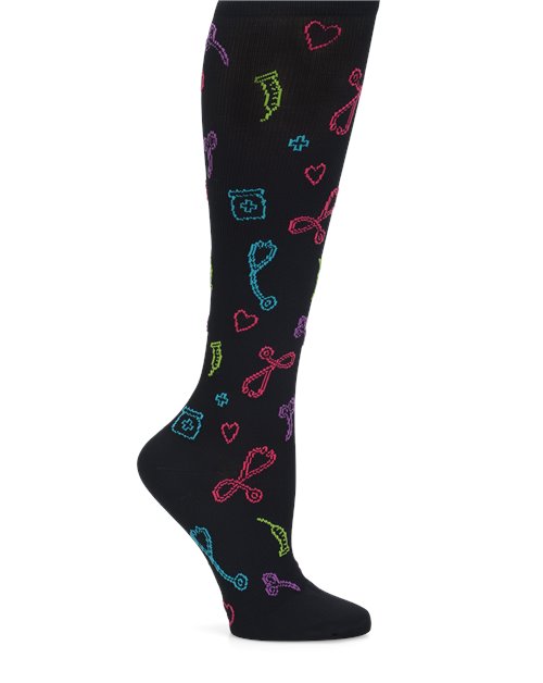 Nurse Mates Compression Sock - Medical Symbols Black 883775