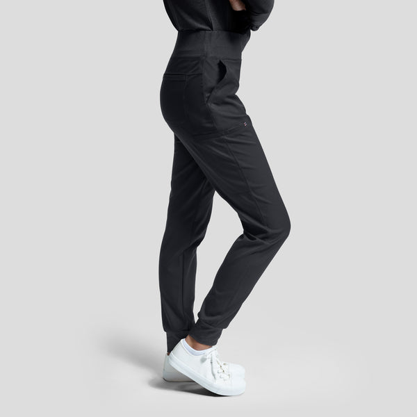 Trendy and functional joggers for women, these pants promote a sporty design and a relaxed fit, providing a modern and comfortable alternative to traditional joggers. The cozy knitted waistband and cuffs not only offer a secure fit but also allow healthcare professionals to move freely while upholding a polished appearance. With a total of six pockets, these joggers combine style, comfort, and practicality.