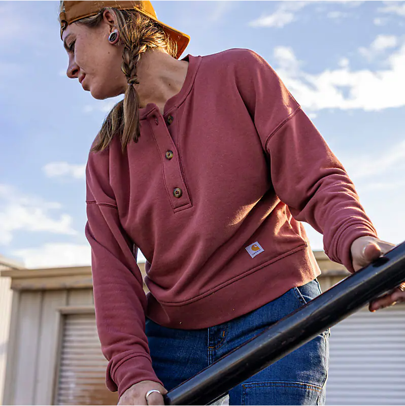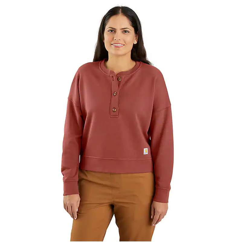 WOMEN'S TENCEL™ FIBER SERIES LOOSE FIT FRENCH TERRY HENLEY SWEATSHIRT