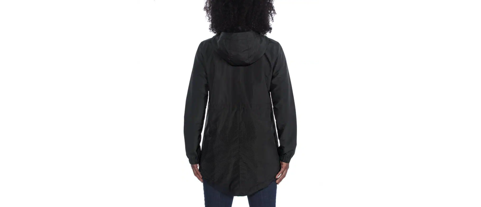 - Attached three-piece hood with drawcord and barrel lock adjusters